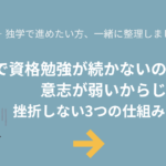 私が試行錯誤の末に見つけ出した、『意志の強さに頼らずに勉強を続けるための3つの具体的な仕組み』 を解説しています。
